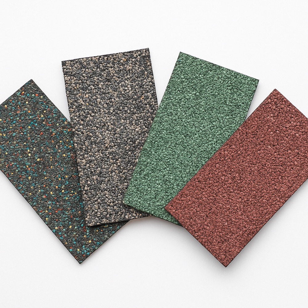 محصولات توليدي حاوي SBS (استايرن، بوتادين، استايرن) استفاده شده به ايزوگام نوع S و محصولاتي كه در تركيب قيري آنها از App (اتكتيك پلي پروپيلن) استفاده شده به ايزوگام نوع A موسوم اند. به منظور كاهش آثار مخرب اشعه آفتاب و صدمات مكانيكي به محصول نصب شده و نيز جدايش كافي لايه هاي رول قبل از نصب، از پوششهاي سنگ ريزه پولكي ( Slate flake )، سيليس، پودر تالك يا فويل آلومينيوم استفاده شده است. اين عايق در كليه ي سطوح قابل استفاده مي باشد.